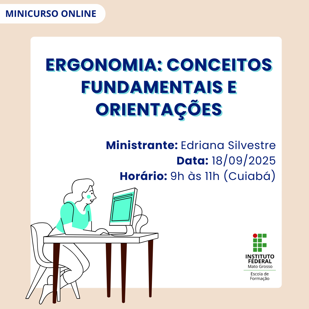 A oferta deste minicurso de ergonomia, com carga horária de 2 horas, justifica-se pela necessidade de sensibilizar os servidores sobre a importância de práticas ergonômicas no ambiente de trabalho, visando à prevenção de desconfortos, lesões e doenças ocupacionais. O curso tem como objetivo apresentar noções básicas de ergonomia, identificar riscos comuns, orientar sobre posturas adequadas e promover pequenas mudanças que contribuam para a saúde, o bem-estar e a produtividade no dia a dia profissional.