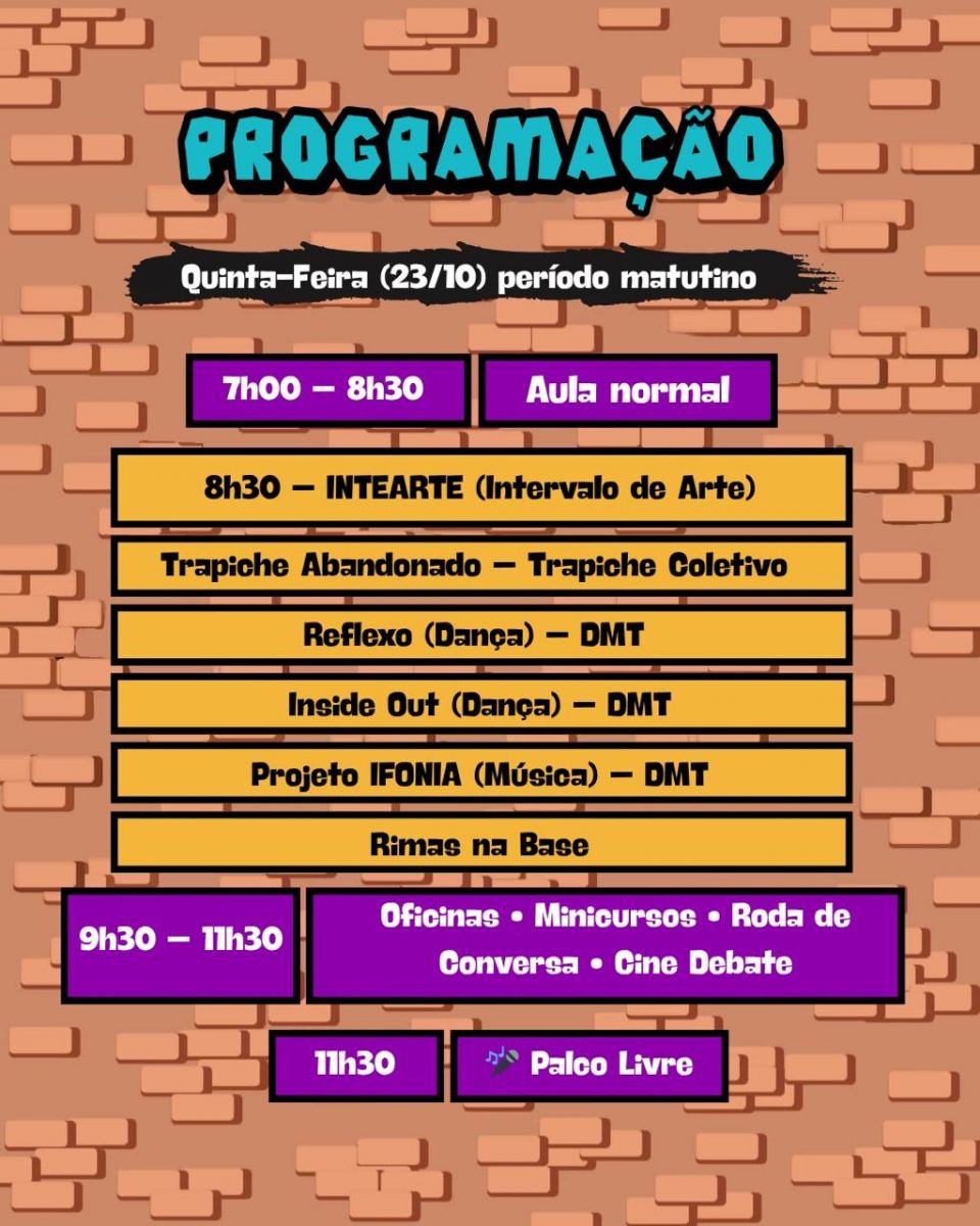 Público-Alvo: Estudantes, servidores, egressos da Instituição, Artistas e comunidade externa; público em geral.