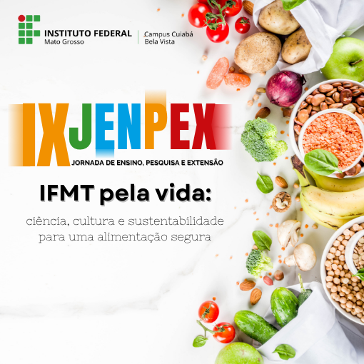 A IX JENPEX do IFMT – Campus Cuiabá Bela Vista é um evento que integra ciência, cultura e extensão em um único espaço de aprendizagem e convivência. Com o tema “IFMT pela vida: ciência, cultura e sustentabilidade para uma alimentação segura”, a programação reúne palestras, mostras, apresentações de trabalhos e atividades culturais ao longo do dia 5 de dezembro, das 8h às 22h. Voltado para estudantes do ensino técnico, médio e superior, além da comunidade externa, o evento promove reflexão, troca de experiências e difusão do conhecimento produzido no campus.
