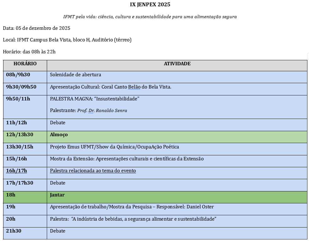 As programações do evento podem sofrer alterações a qualquer momento, por isso sempre confira as programações para se manter atualizado.