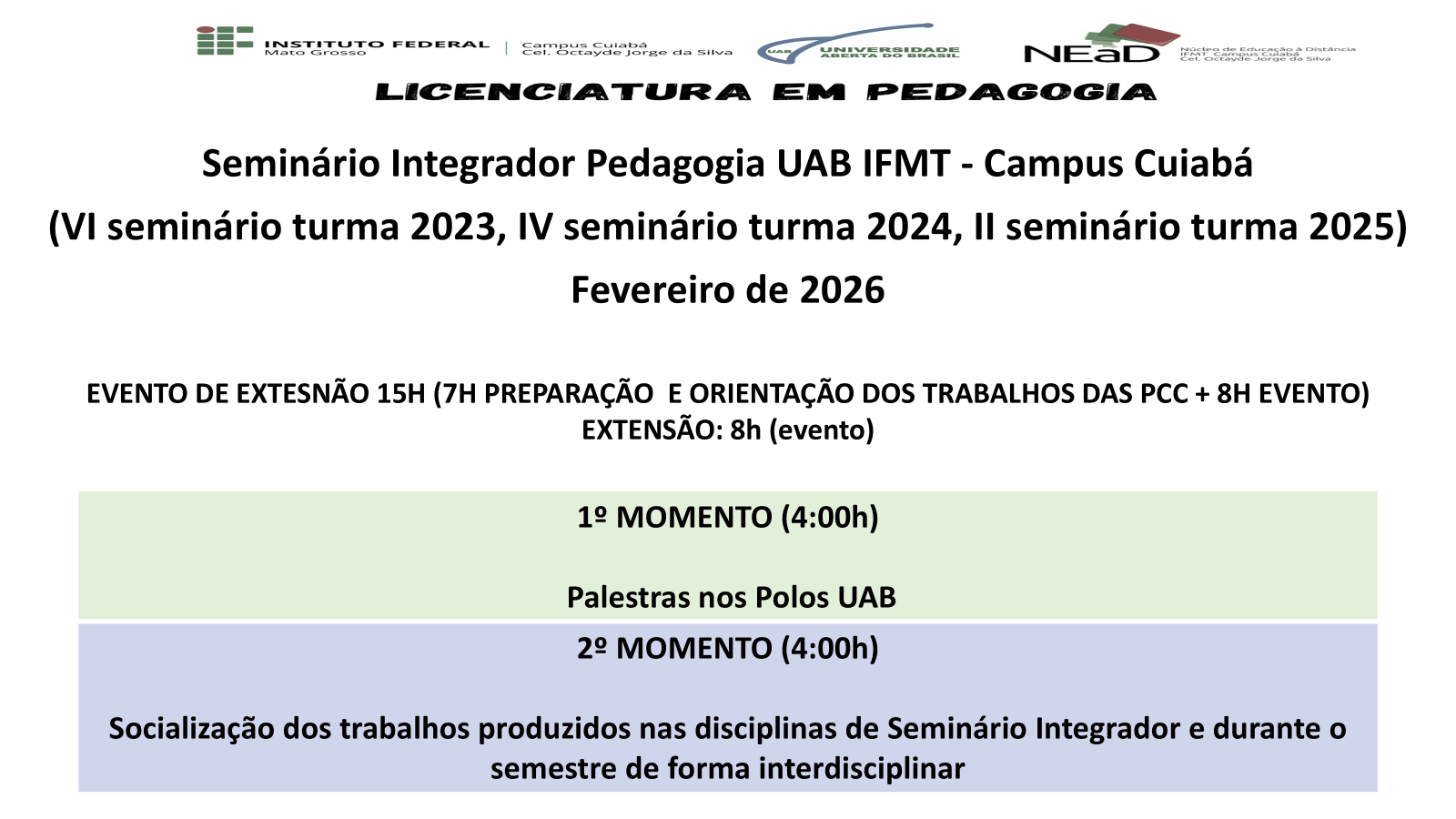 Seminário Integrador Pedagogia UAB IFMT - Campus Cuiabá
