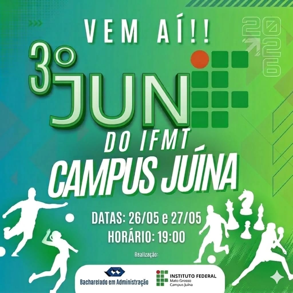 Os Jogos Acadêmicos do IFMT – Campus Juína 2026 serão realizados nos dias 26 e 27 de maio, nas dependências do campus, com o objetivo de promover a integração entre acadêmicos de Juína e região, incentivar a prática esportiva e fortalecer valores como respeito, disciplina, união e trabalho em equipe. O evento contará com as modalidades de vôlei misto, xadrez, futsal masculino e feminino, e ping pong, reunindo estudantes do ensino superior, além de servidores e funcionários das instituições participantes. As competições seguirão regras oficiais adaptadas ao contexto acadêmico, valorizando o espírito esportivo, a ética e a convivência saudável entre os participantes.
